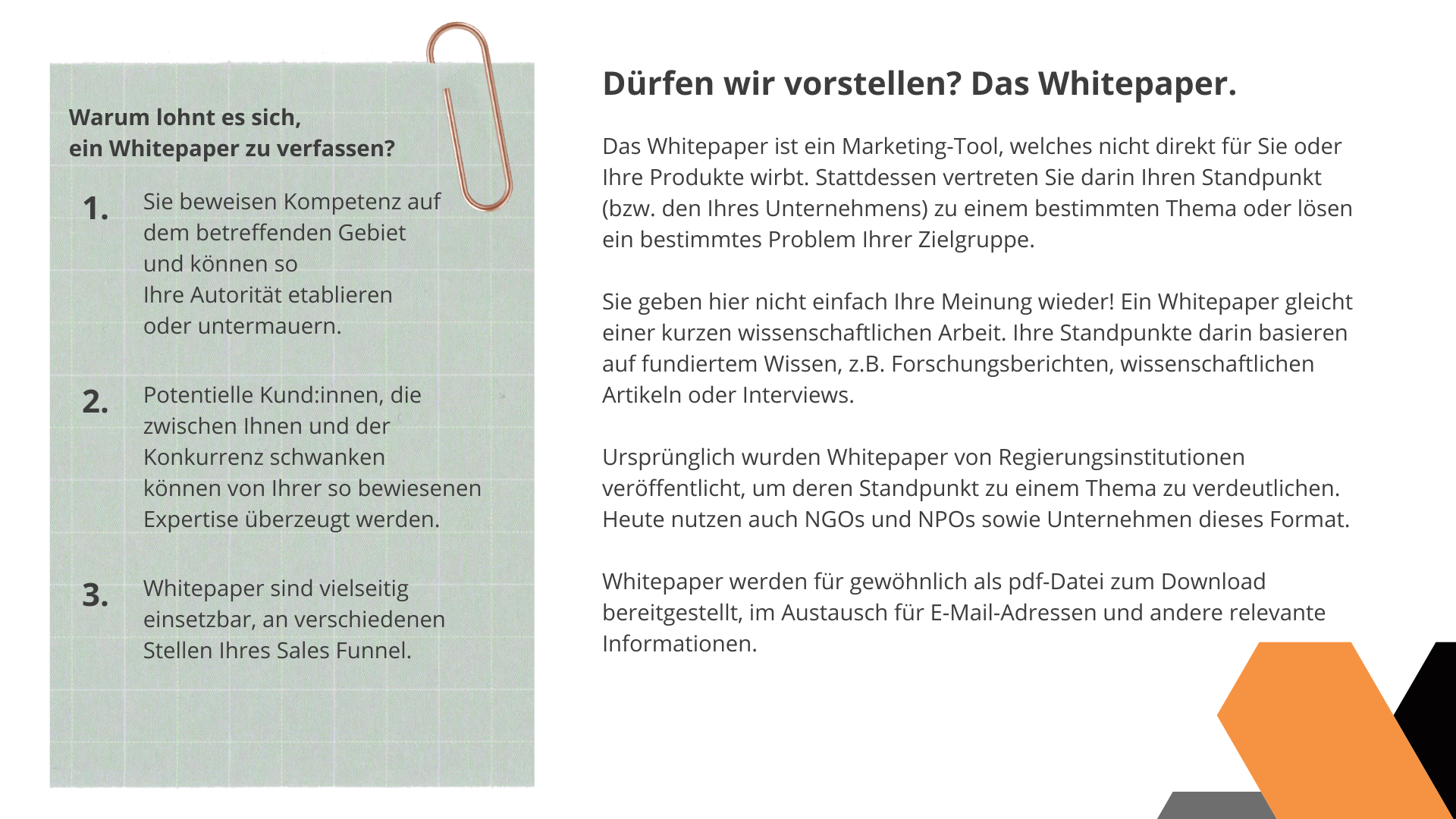 – Sie sparen sich Recherche-Zeit! Hier ist alles Wichtige über Whitepapers für Sie gesammelt und in Form gebracht.
